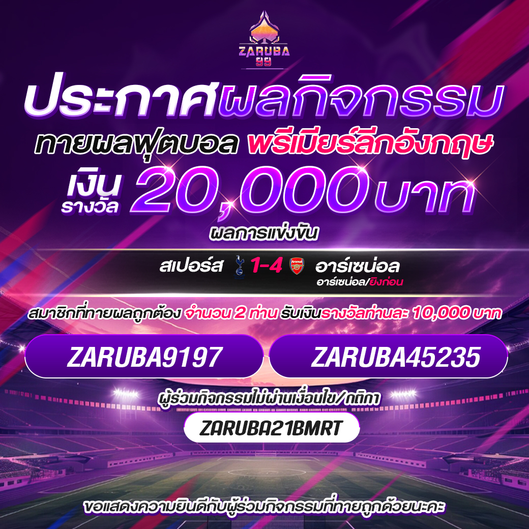 ประกาศผลกิจกรรมทายผลฟุตบอลพรีเมียร์ลีกอังกฤษ